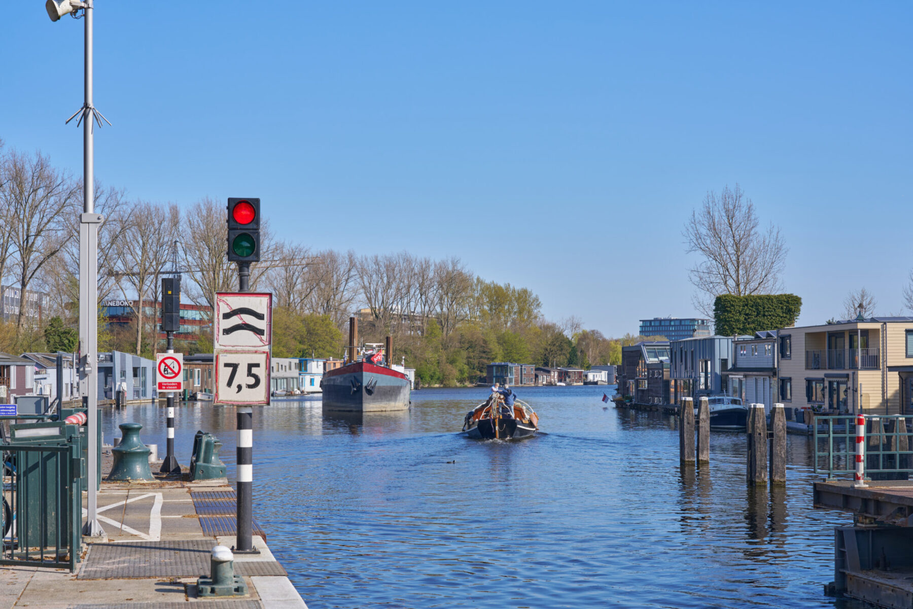 In de toekomst hangen we een 55-tal van dit soort Helmholtzresonatoren onder de huidige, meest noordelijke Schinkelbrug (brug 2, zie kaartje). En dat is uitzonderlijk: volgens Renders zijn we in Nederland de eersten die de geluiddempende kasten niet binnen maar buiten gaan toepassen. Waarom doen we dat eigenlijk? ‘Met de verbreding van de A10 Zuid breiden we ook het aantal bruggen over de Schinkel uit. Dat betekent meer verkeer en dus een toename van geluid’, aldus Renders. ‘Aan de noordkant van de Schinkelbrug bouwen we een brug voor nieuwe rijstroken van de A10 Zuid. In het water bevinden zich woonboten die al dicht op de huidige brug liggen. Die afstand wordt met de nieuwe brug nog kleiner. Maar bewoners mogen straks niet meer geluidsoverlast ervaren dan in de huidige situatie.’