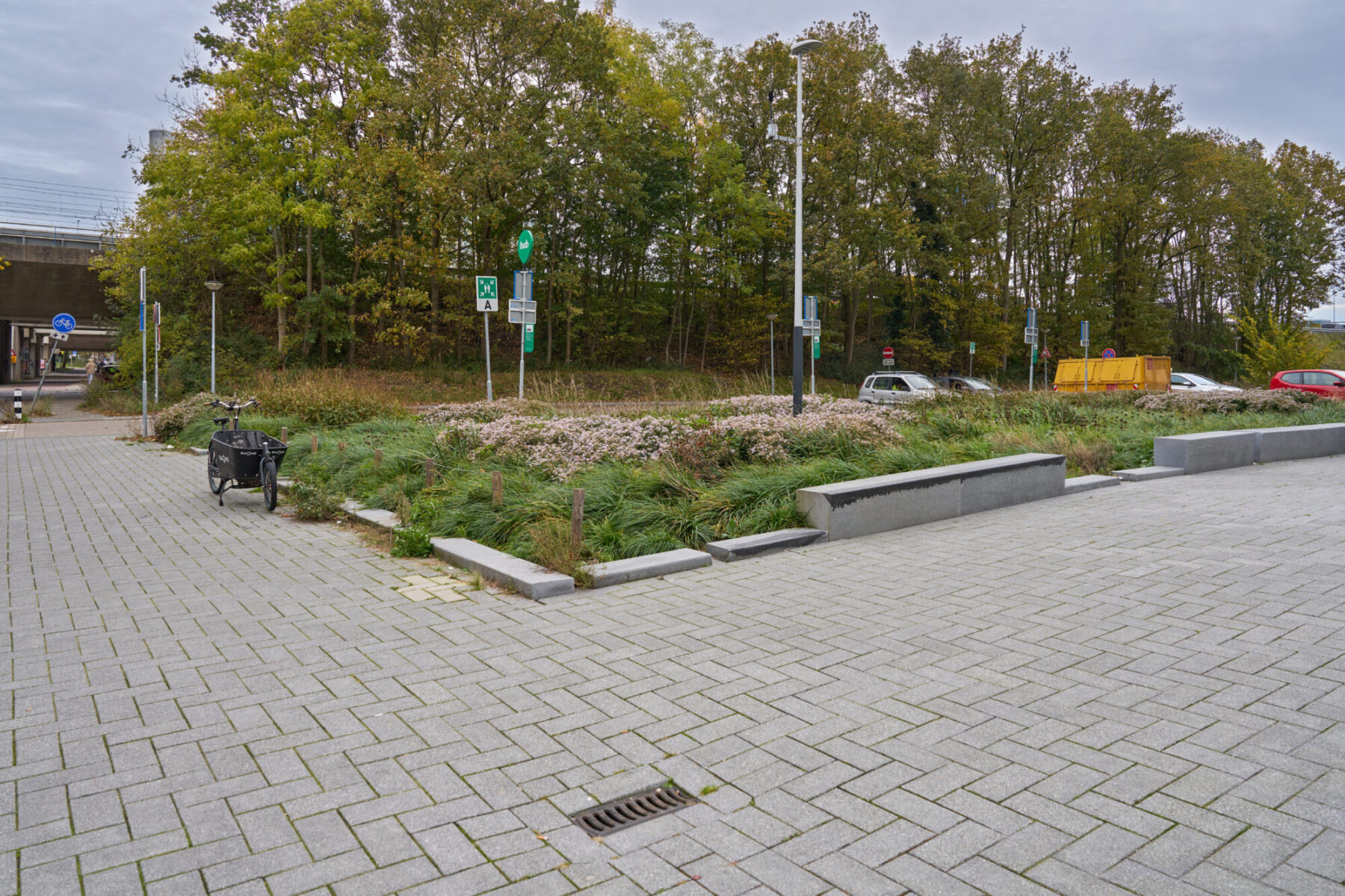 Aan de noordkant van Valley, tussen de Beethovenstraat en Spoorslag, richtten we onlangs een hub in voor deelvervoer. De hub biedt ruimte aan 6 deelauto’s en een bakfiets. Het idee is dat reizigers bij zo’n deelmobiliteitshub makkelijk kunnen overstappen op ander soort (duurzaam) transport, wat de doorgang van het verkeer ten goede komt. De hubs hebben een herkenbare uitstraling en een vaste identiteit, waardoor ze makkelijk te herkennen zijn. Door vervoermiddelen te delen wordt het autogebruik teruggedrongen en ontstaat meer ruimte voor voetgangers en fietsers.