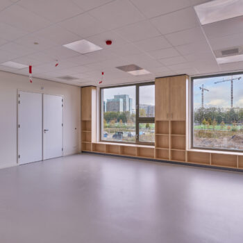 Zo’n anderhalf jaar nam de bouw van het nieuwe onderkomen voor de Kindercampus Zuidas in beslag. Voor de leerlingen en medewerkers van de bassischool en kinderopvang was dat proces live te volgen: het nieuwe pand verrees immers pal naast het huidige gebouw. De school begon in het huidige pand redelijk uit haar voegen te barsten – zo werden delen van de gang al omgebouwd tot nieuwe lokalen en zijn buiten tijdelijke units geplaatst. Naar de grote verhuizing werd dan ook reikhalzend uitgekeken, en nu is het eindelijk zo ver. Gedurende de Kerstvakantie neemt de Kindercampus Zuidas afscheid van het oude pand en haar intrek in het nieuwe.