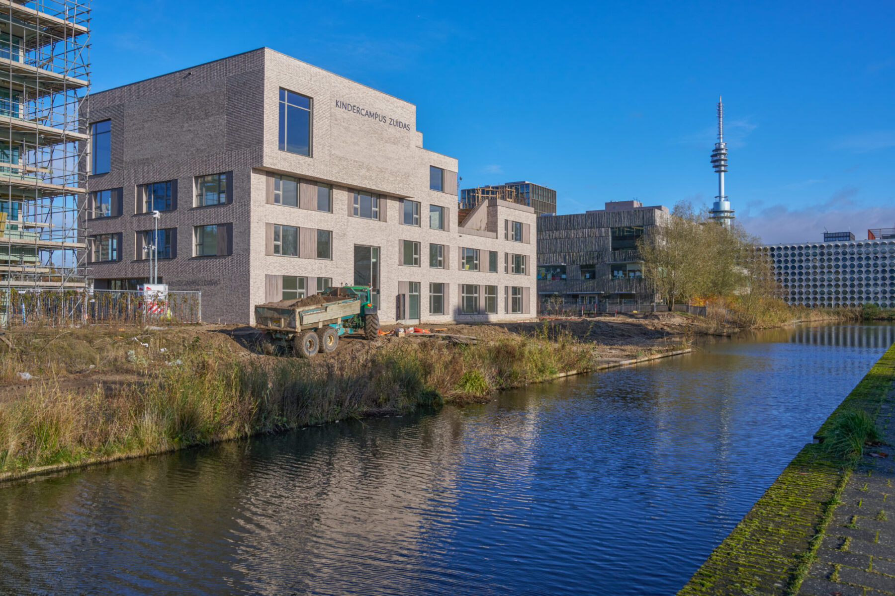 De nieuwe Kindercampus Zuidas is het eerste opgeleverde gebouw in de nieuwe, autoluwe woonbuurt Ravel. De buurt verrijst in het gebied tussen de voetbalvelden van AFC en de De Boelelaan. We bouwen hier de komende jaren 1.350 woningen, vooral voor gezinnen. Daarvan bestaat 40% uit sociale huur, 40% uit middeldure huur en 20% uit koopwoningen
