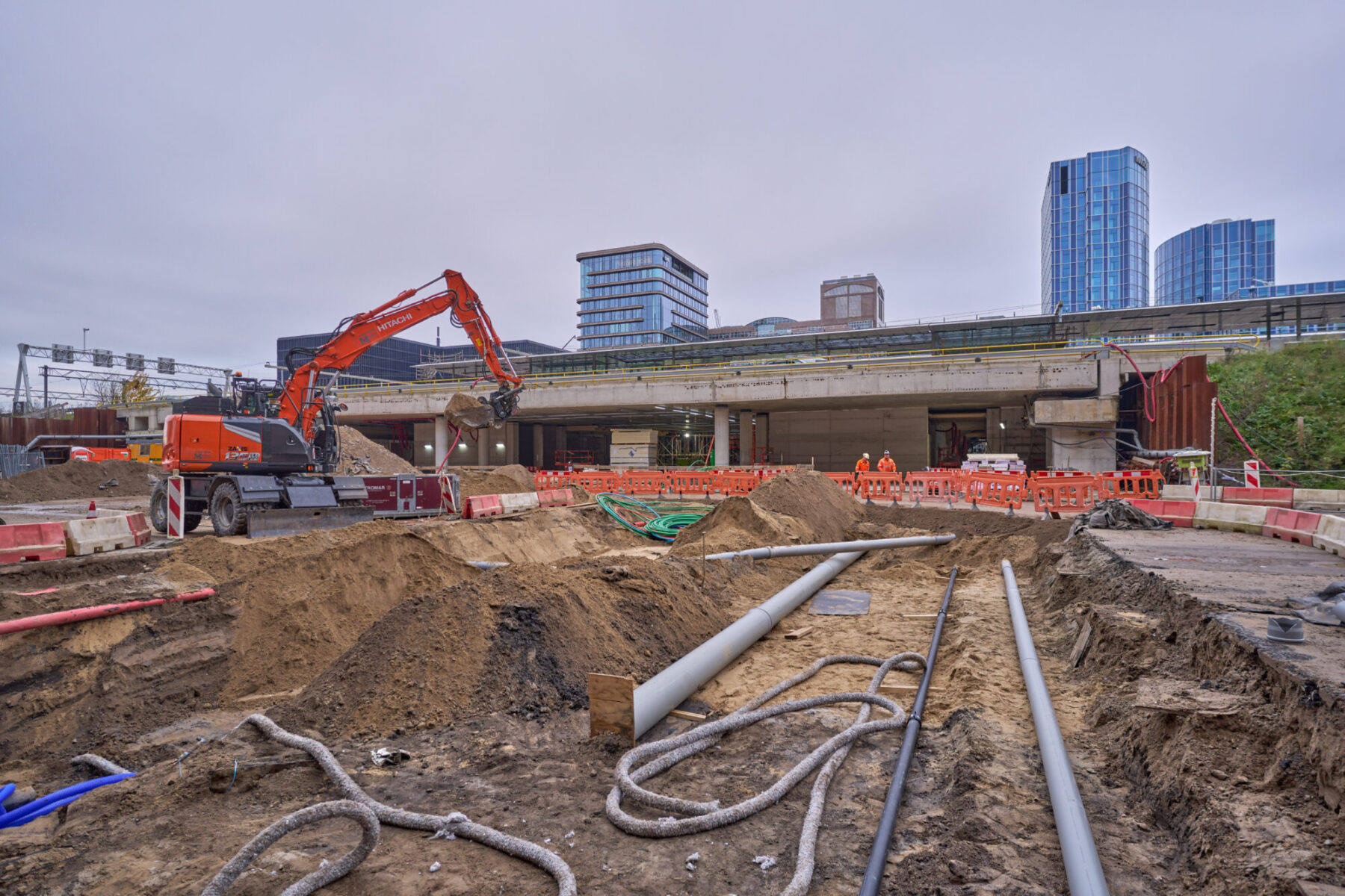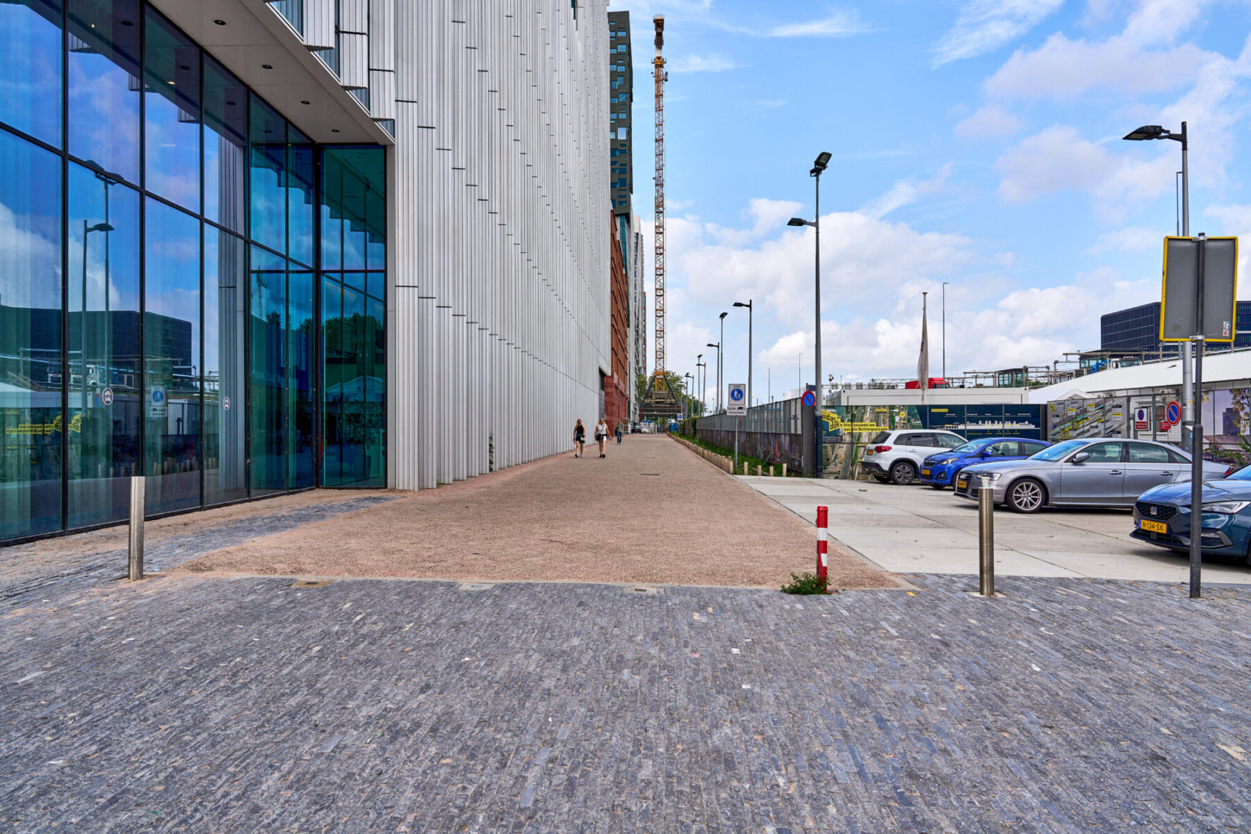 Het gebied dat we gaan inrichten valt nu nog grotendeels binnen de bouwterreinen van bouwcombinatie Nieuw-Zuid (Mobilis, Boskalis en van Gelder). Zodra de Brittenpassage opengaat, worden ook de stationspleinen toegankelijk. Reizigers zullen voorlopig dan ook nog niet heel veel merken van het werk. De Arnold Schönberglaan vormt hierop een uitzondering: deze ‘stopt’ nu ter hoogte van de Benjamin Brittenstraat, maar de komende periode trekken we de straat weer door tot aan de Parnassusweg. Daarmee komt ook een verkorte looproute naar het nieuwe The CubeHouse beschikbaar. Eind april is de straat klaar.