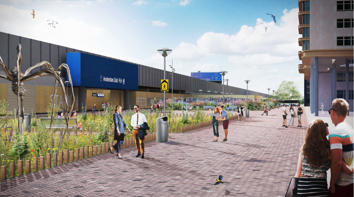 Met de opening van de Brittenpassage (uiterlijk in 2027) gaat de bestaande reizigerspassage van station Amsterdam Zuid (de Minervapassage) enkele jaren dicht voor een grondige verbouwing. Gedurende deze tijd vormt de Brittenpassage de toegang tot het station. De noordelijke en zuidelijke entrees van de passage moeten daarom goed bereikbaar en toegankelijk zijn voor tienduizenden reizigers per dag, en tegelijkertijd een fijne (groene) plek om te verblijven. Daarom beginnen we nu vast met het aanleggen van de tijdelijke openbare ruimte bij de ingangen van de Brittenpassage. Aan de noordkant is dat de Eduard van Beinumstraat, aan de zuidkant de Arnold Schönberglaan.