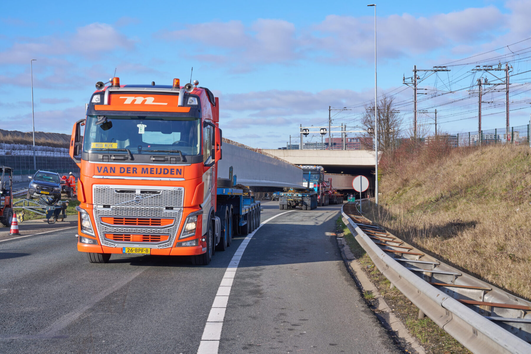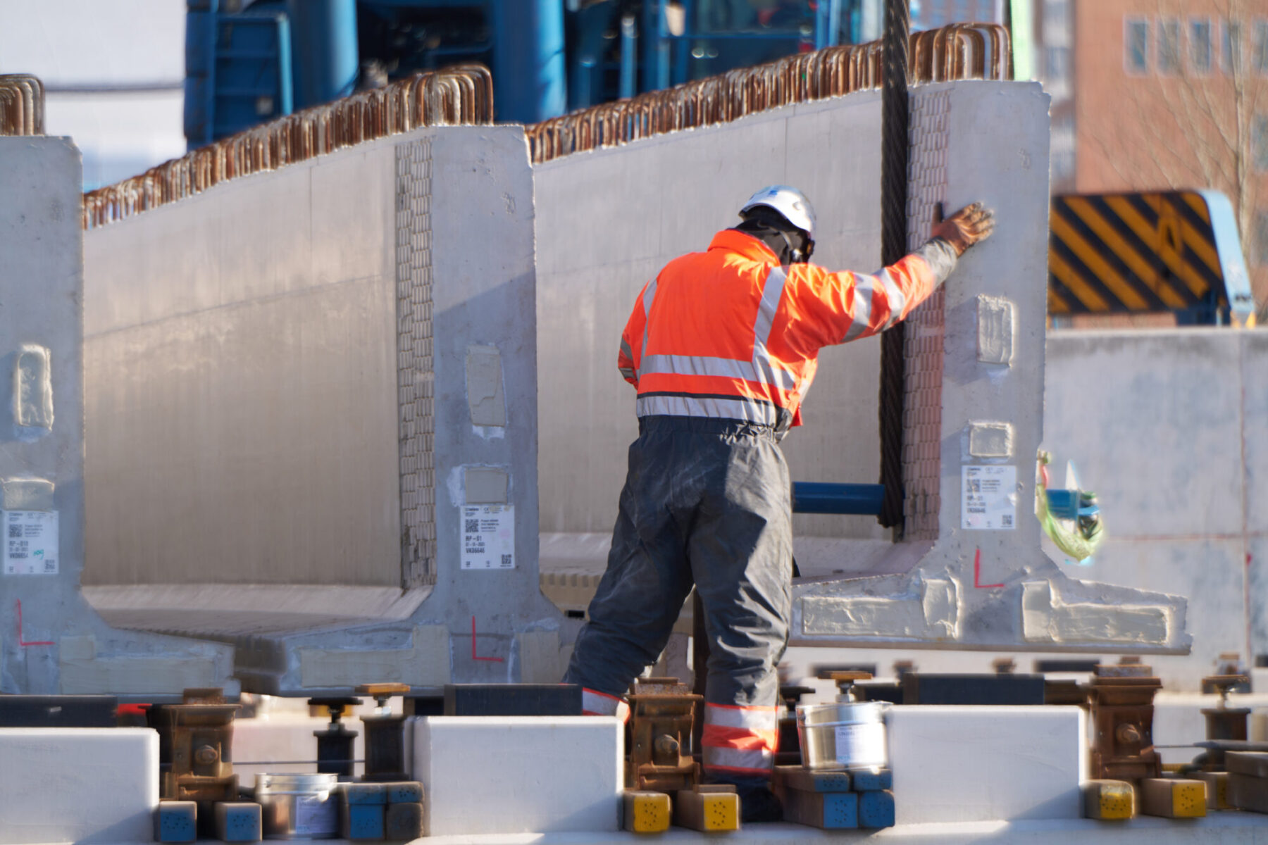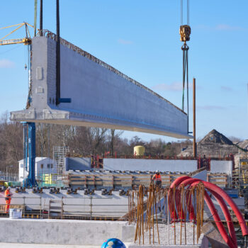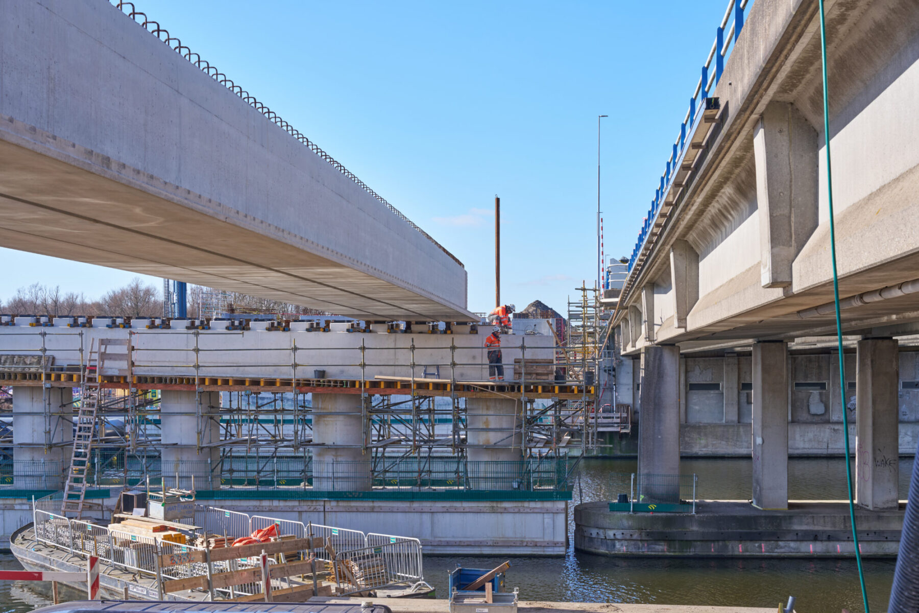 De voorgebouwde liggers reisden eerder al over water vanuit Friesland naar de haven van Amsterdam. Daarvandaan kwamen ze het afgelopen weekend op trailers over de A10 richting de Schinkelbrug gereden. Het op de plek hijsen van een doorsnee 40 meter lange ligger duurde zo’n vijftien á twintig minuten. Alleen het inhijsen van de zogenaamde randliggers – die groter zijn en extra bevestiging nodig hebben – nam wat langer in beslag.