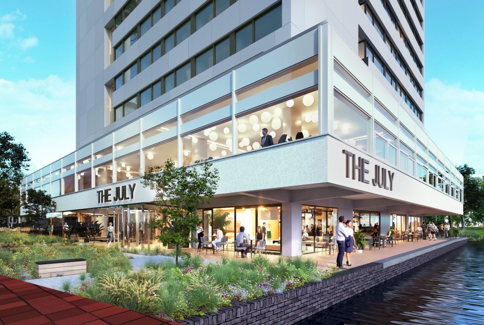 Het gebouw huisvest straks ongeveer 240 comfortabele appartementen verdeeld over 14 verdiepingen, met ieder een volledig uitgeruste privékeuken. Daarnaast komen er gemeenschappelijke voorzieningen zoals evenementenruimtes en 300 m2 aan vergaderplekken, co‑workingzones, en wellness- en fitnessfaciliteiten. Daarmee mikt The July op een comfortabel en flexibel verblijf voor moderne reizigers, professionals en Zuidassers, zowel voor korte als voor langere tijd. De buurt is ook welkom, met op de begane grond publiek toegankelijke buitenruimtes, een bar, een restaurant met terras aan het water. Er is voldoende parkeergelegenheid aanwezig.