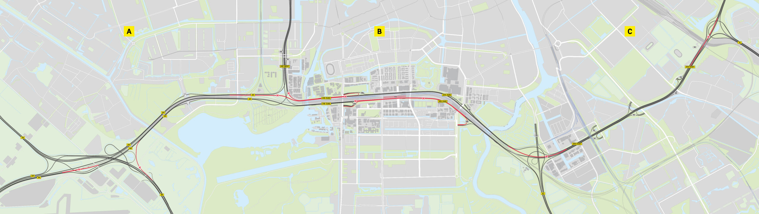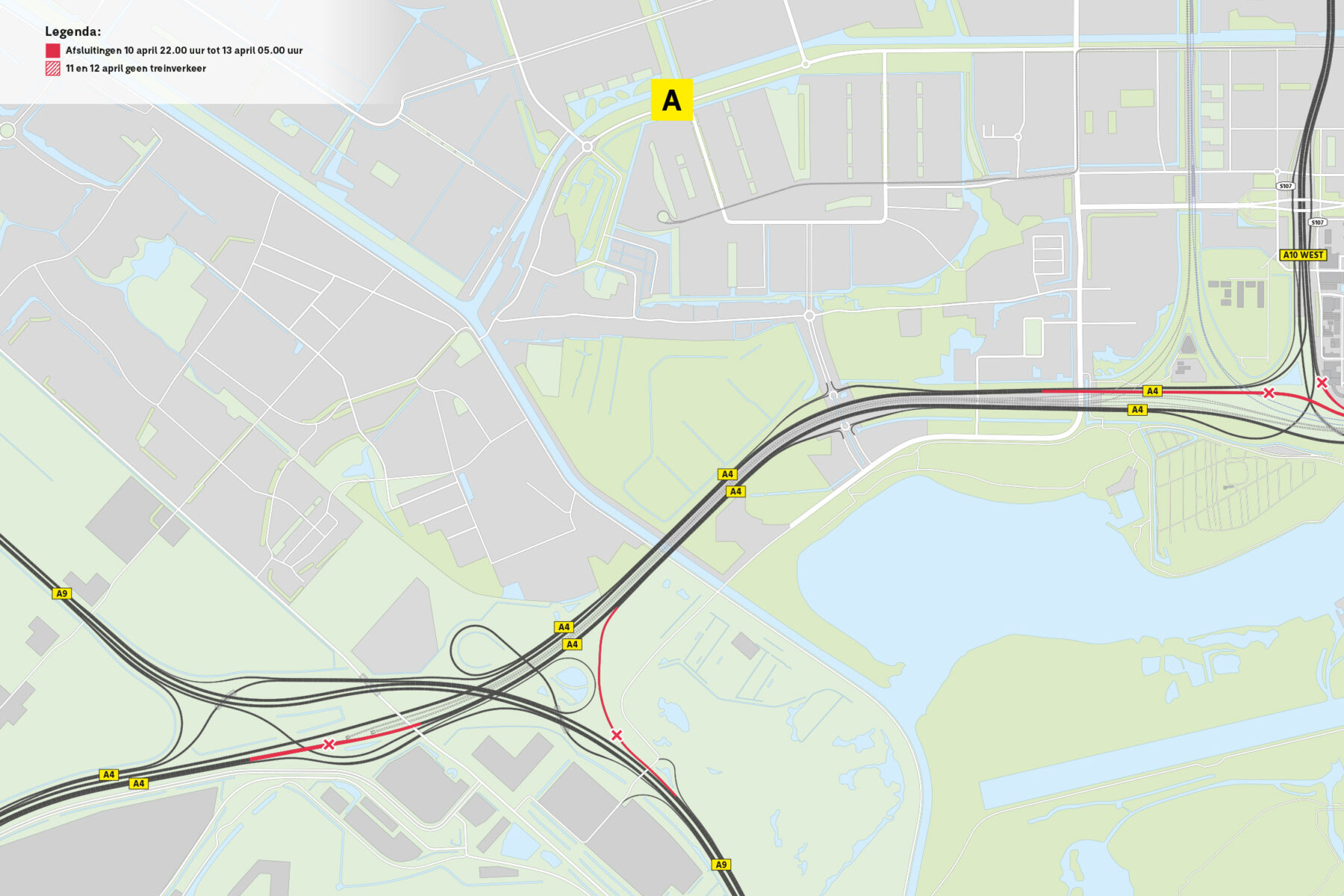 • Verbinding A4 naar A10 West en afrit S108 Amsterdam/Oud Zuid