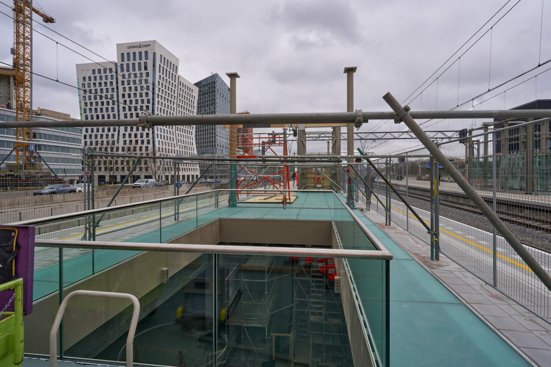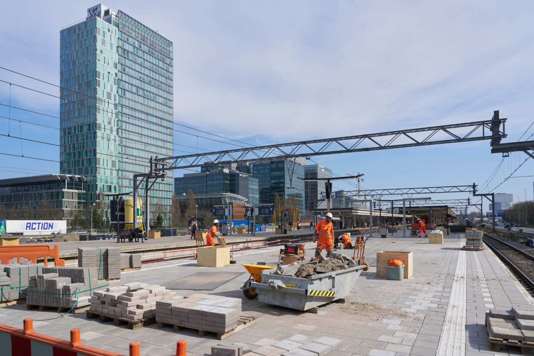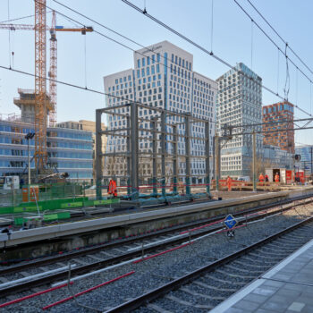 The existing overhead wire structure next to the Brittenpassage needs to be adapted because it is not suitable for the new roofs for the railway platforms. This platform roof will be put in place two weeks later, in the weekend of 14/15 June 2025. The motorway will be closed again that weekend and we will use cranes on the A10 Zuid to lift the roof sections into place. Also during that weekend, there will be no trains running to and from Amsterdam Zuid station.