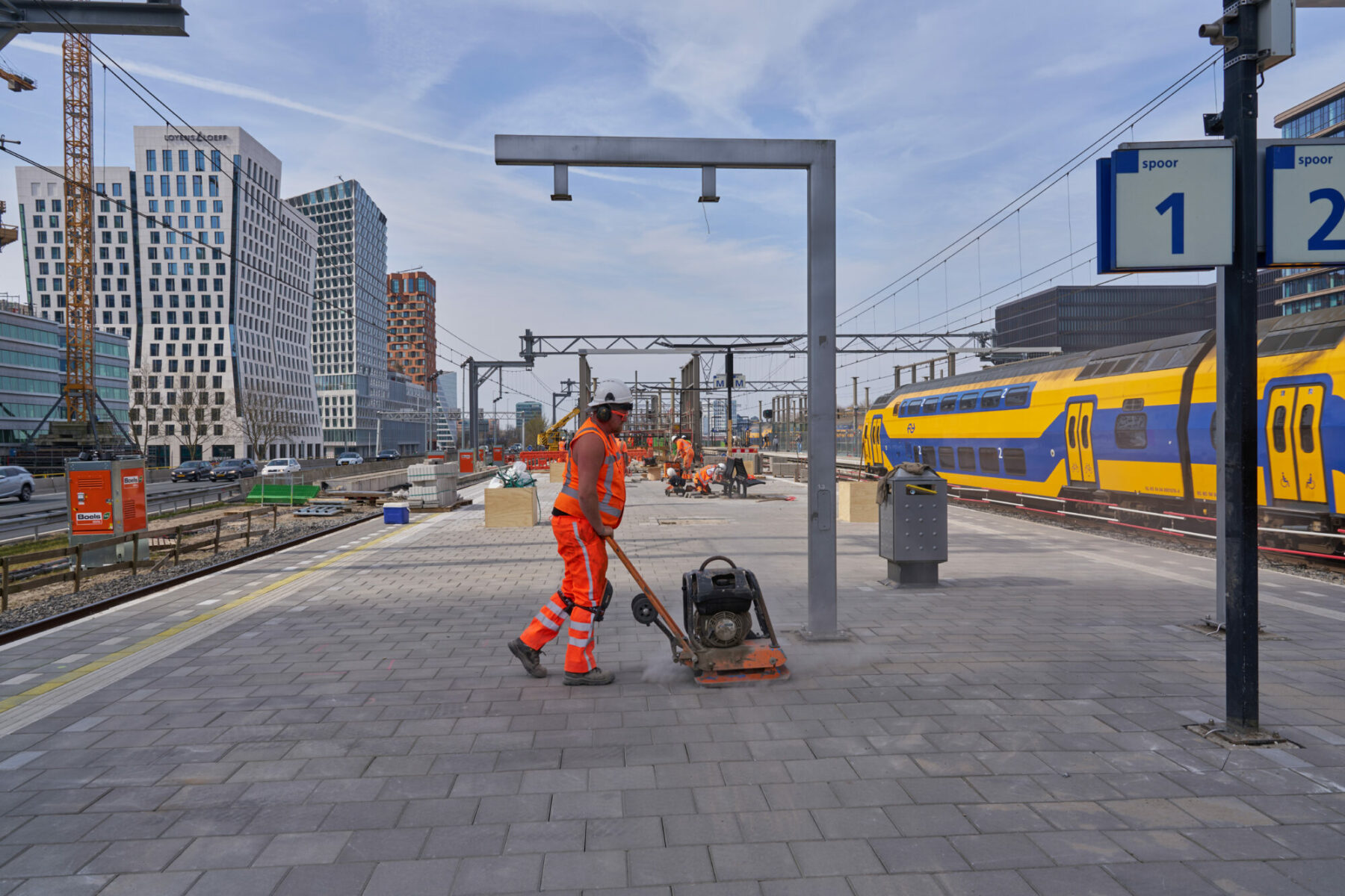 The works are part of the large-scale regeneration of Amsterdam Zuid station. From 22.00 on the evening of Wednesday, 28 May until 05.00 on the morning of Monday, 2 June, two lanes on the A10 ZuidA10 Zuid dicht will be closed. We will be positioning large cranes on the A10 Zuid next to the new Brittenpassage, de toekomstige extra reizigerspassage van het station. the future additional passenger tunnel at the station. Construction work is so well advanced that we can now lift stairways and a lift from the motorway to connect the passageway with the platform for tracks 3 and 4. Later this year, we will do exactly the same with the stairways and lift for the railway platform for tracks 1 and 2. We already built the new the new and permanent railway platforms for the new passenger tunnel earlier this year.