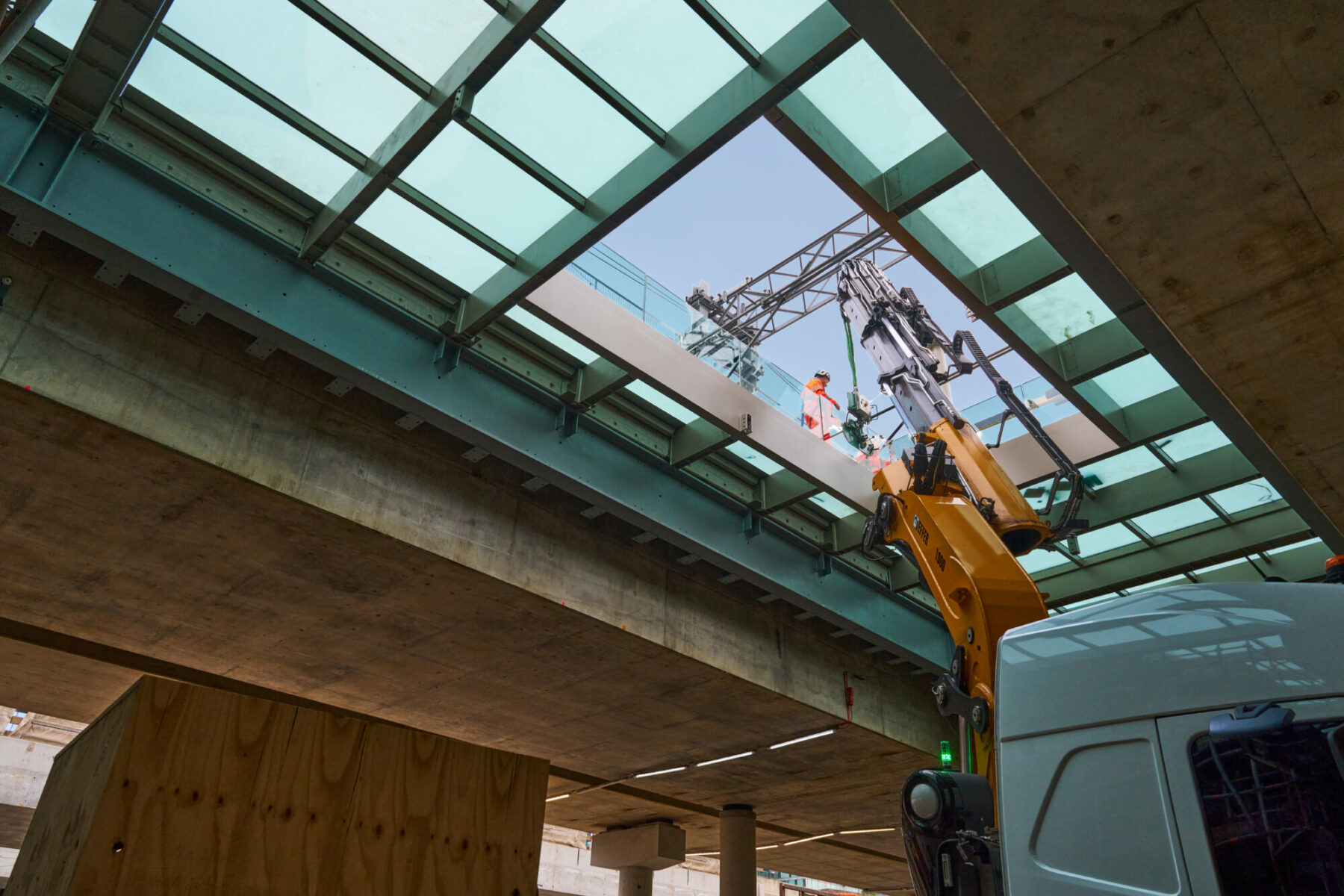 Would you like to see the lifting of the platform roof with your very own eyes? If so, come along to this construction spectacle on 14 June. From a special location, you will be able to see how huge cranes lift the platform roof section by section into position from the A10. You will also be briefed on it as it happens. Register now.