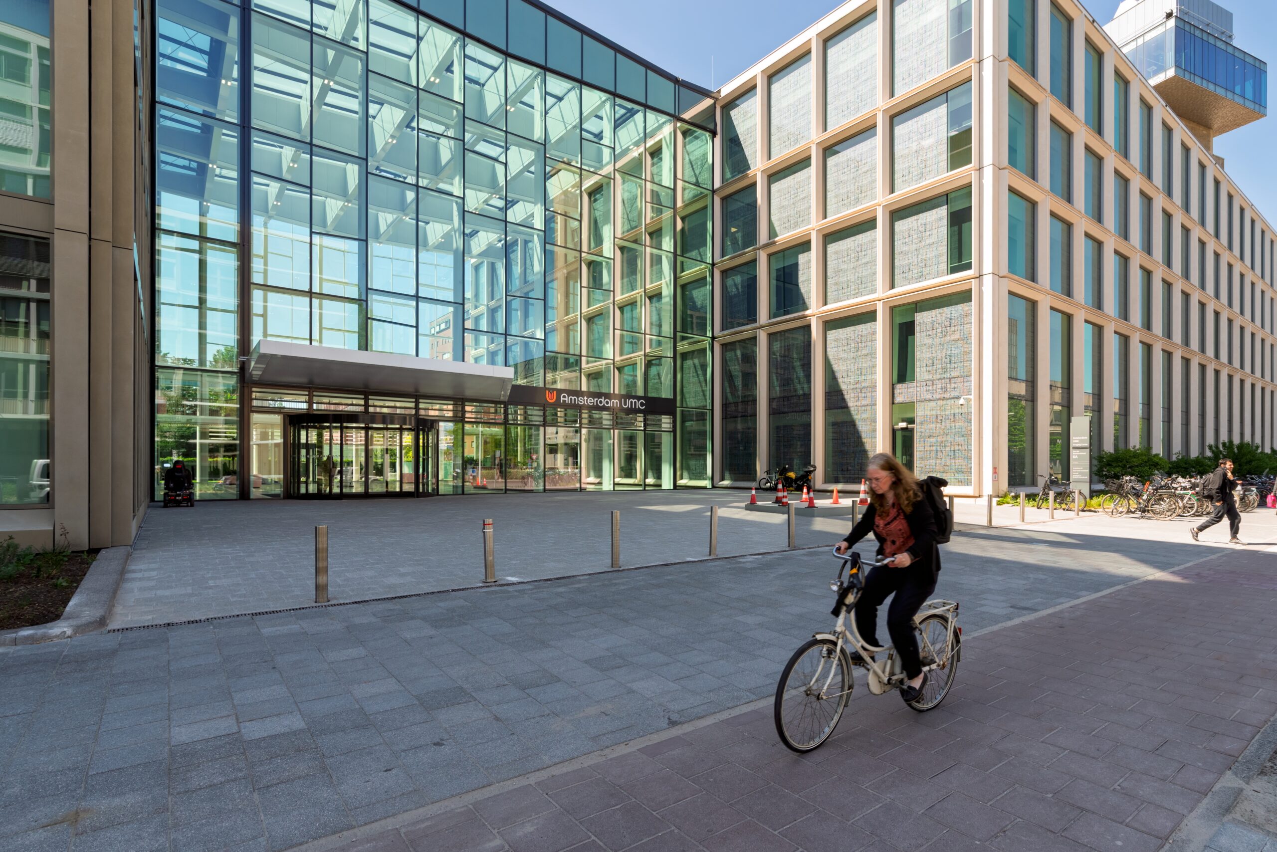 Construction of the Research & Diagnostics Centre Adore started in September 2022, after preparatory work in the spring of that year. The building was officially opened by Queen Máxima on 14 May 2025. The RDC ADORE is now in use. The researchers from the Cancer Center Amsterdam have moved to the new building. The existing accommodation along the A10, the blue-red ‘block box’, will be demolished. Parking spaces in front of the entrance to RDC ADORE have been replaced by a green design.