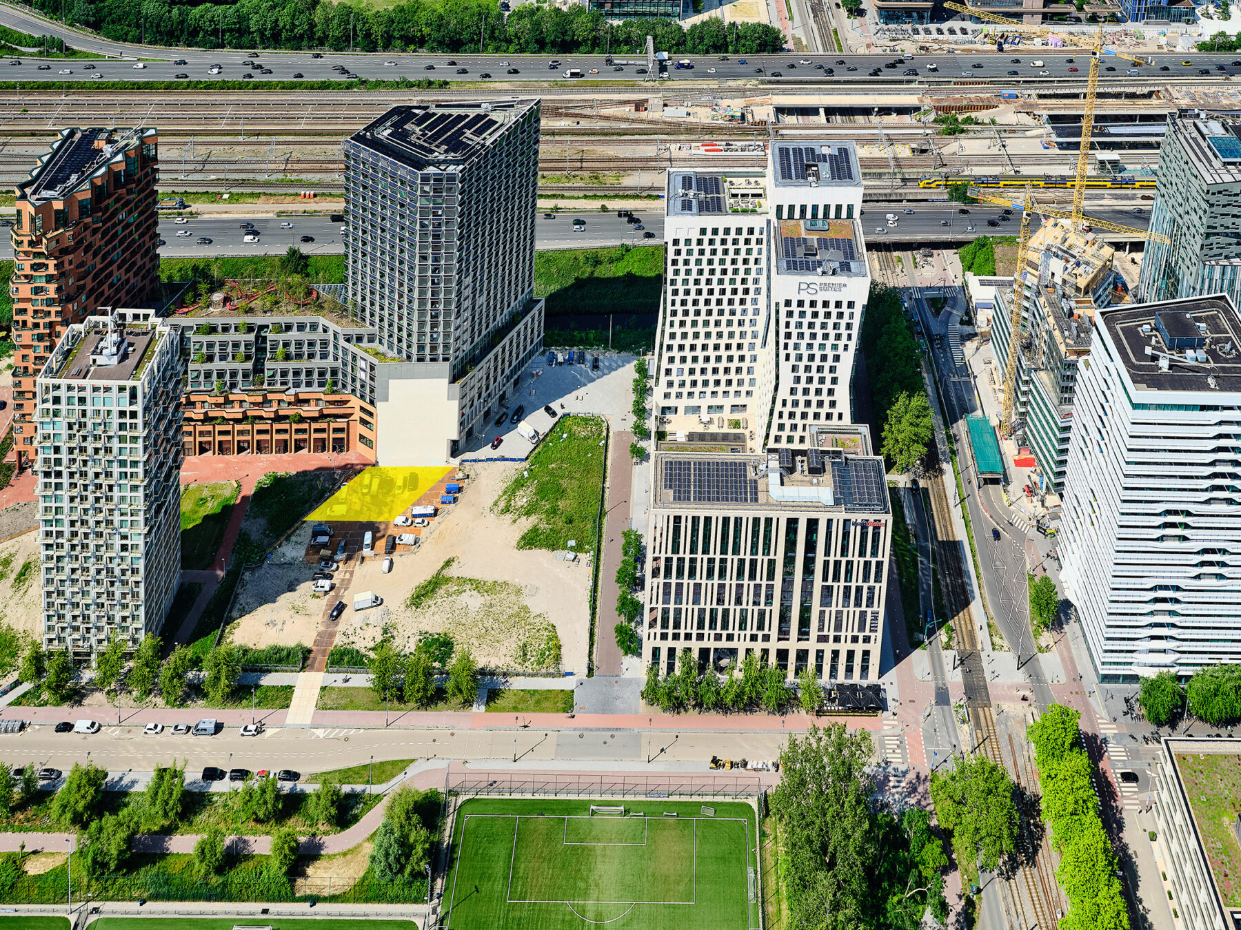 On plot B2 in Kenniskwartier (Knowledge District), a residential complex with housing for students is being built next to The Pulse of Amsterdam. The building will be up to 30 m in height and include 127 student homes varying in size from 18 to 24 sq. m, including a number of non-independent rental properties with communal kitchens.