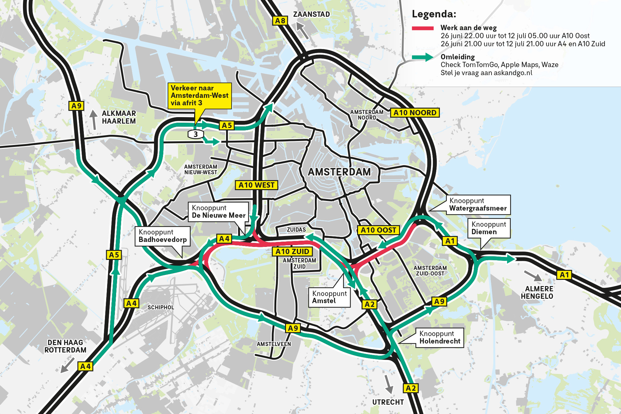 Toolkit afsluiting A4, A10 Oost en A10 Zuid | 26 juni-12 juli 2025